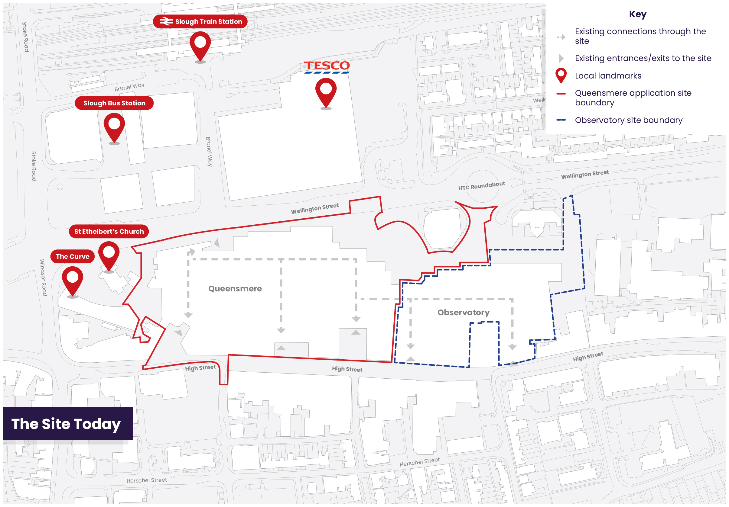 The Slough Central site is located in the heart of Slough town centre. The 15-acre site currently comprises the Queensmere & Observatory Shopping Centres.